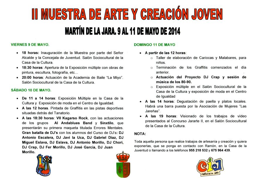 II MUESTRA DE ARTE Y CREACIÓN JOVEN. 9 AL 11 DE MAYO DE 2014